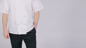 The Veteran Coat's simple design with short sleeves and ten pearl buttons is an elegant closet staple that partners well with the Executive Bistro Apron.