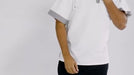Wish you could wear your favorite t-shirt to work? Our Pullover Utility Shirt is the next best thing. Made with lightweight poplin and an extra two inches of length, this shirt will be your best friend in the kitchen.